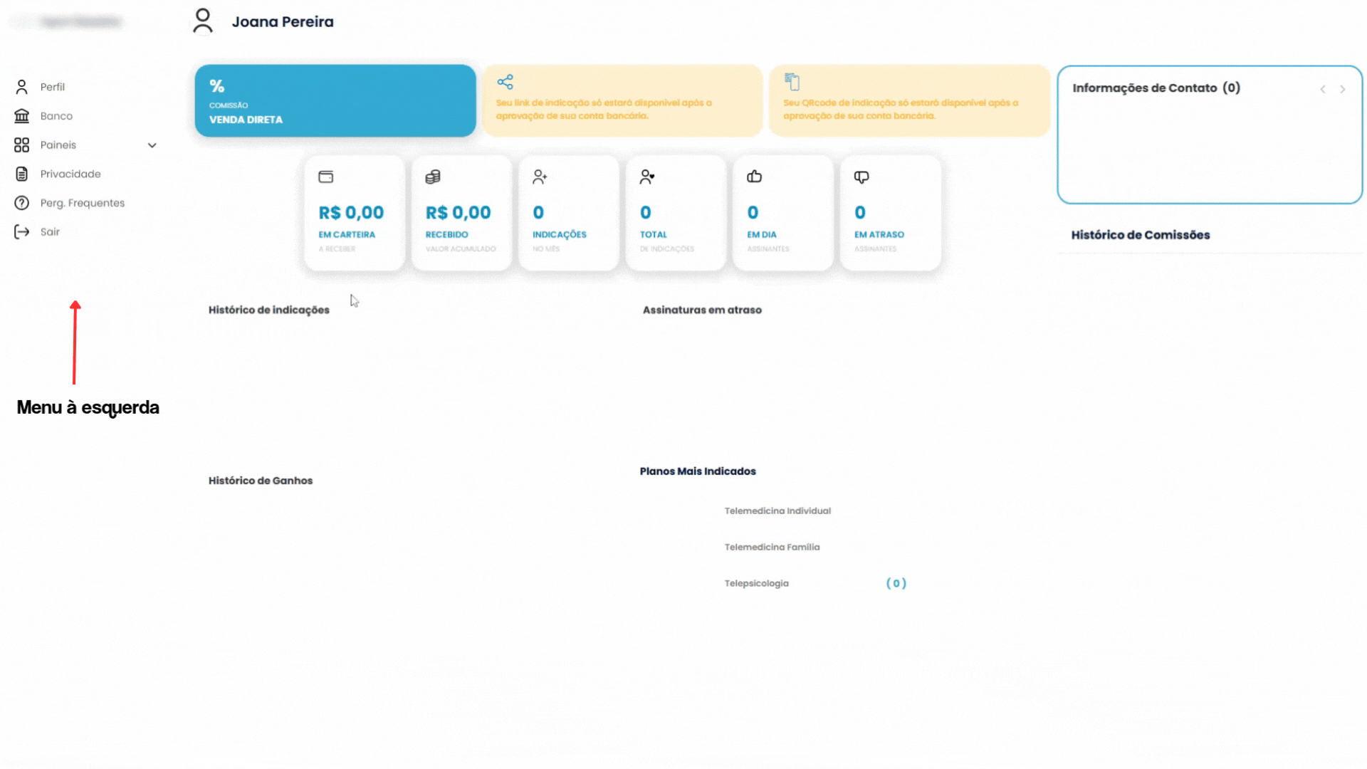 • Histórico de comissões: Sinaliza todas as comissões recebidas;